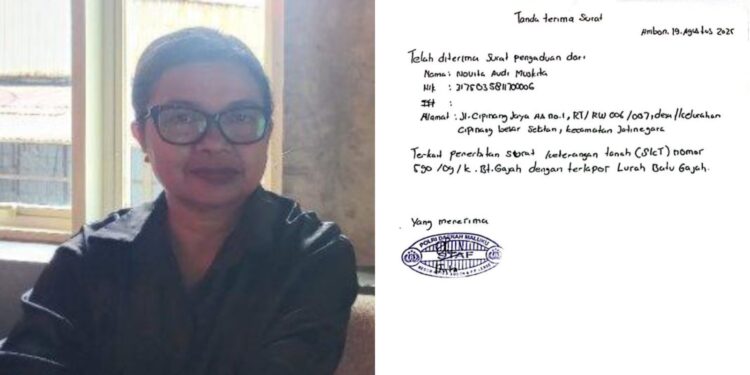 DN, Ambon –Novita Audi Muskita secara resmi telah mengajukan laporan pidana terhadap Lurah Batu Gajah Diana Tamaela, ke Polresta Pulau Ambon dan Pulau – Pulau Lease pada Selasa (19/8/2025) kemarin.