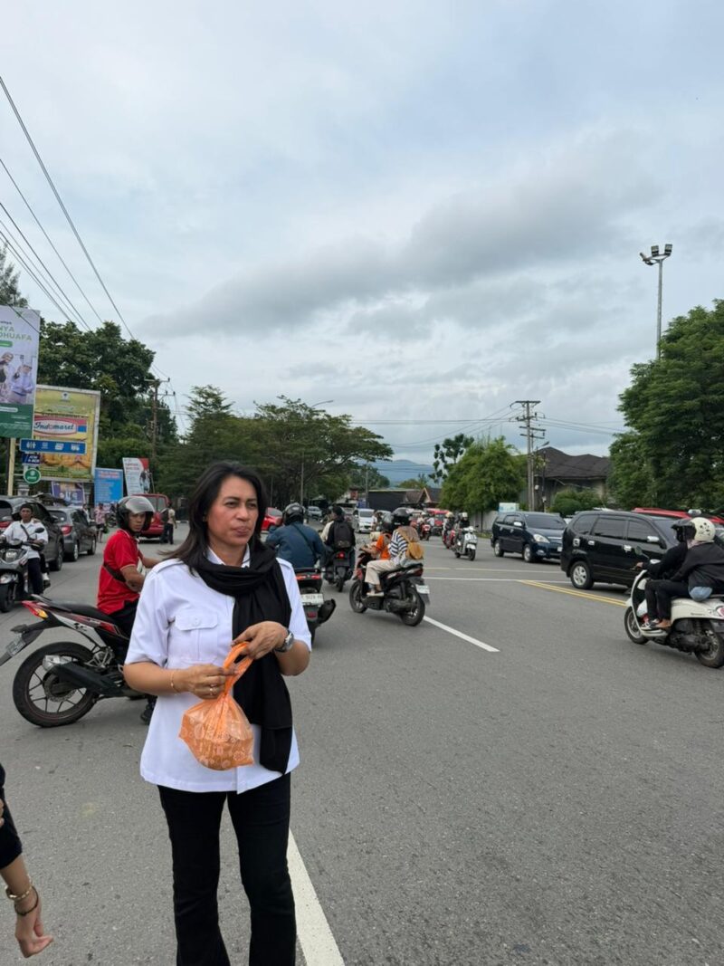 Pembagian takjil dipimpin langsung oleh owner Coffee JMP, Ny. Lala Kariuw. Bersama para karyawan, ia turun langsung ke jalan membagikan sekitar 200 paket takjil kepada pejalan kaki serta pengendara roda dua dan roda empat yang melintas di kawasan tersebut.